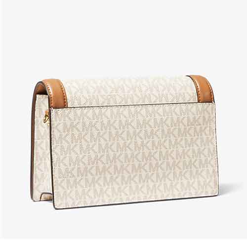MICHAEL KORS Jet Set Large Logo and Leather Crossbody White Bag